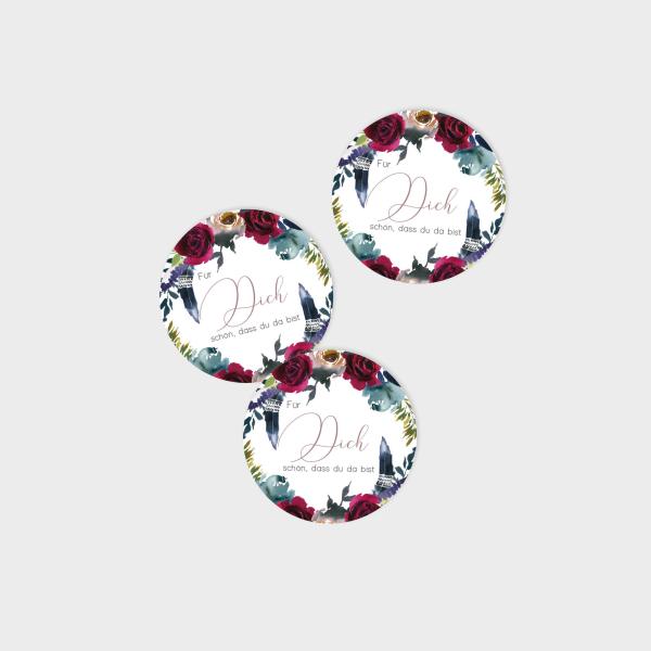Eure Aufkleber, aus unserer Designserie "Merlot und Navy", könnt ihr über unseren Konfigurator selbst gestalten.