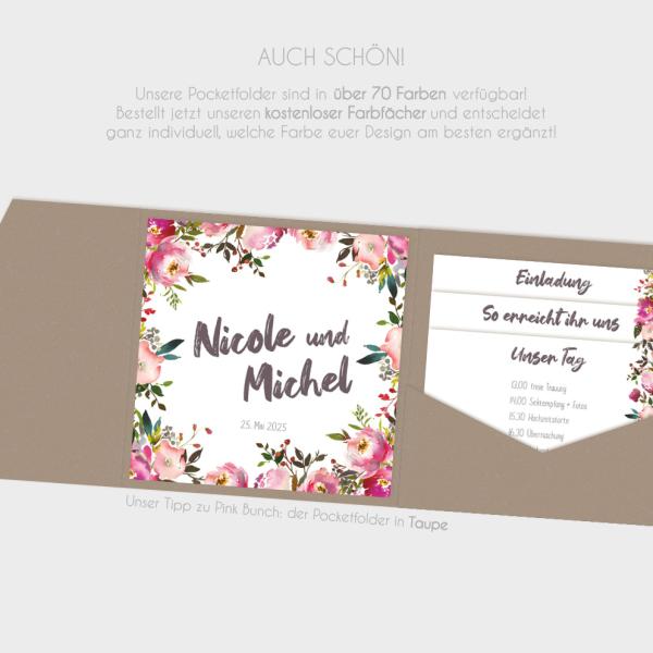 Weitere Einlegekarten, sowie perfekt abgestimmte und individuell gestaltbare Pocketfold-Karten findet ihr natürlich auch in unserer Designserie "Pink Bunch".