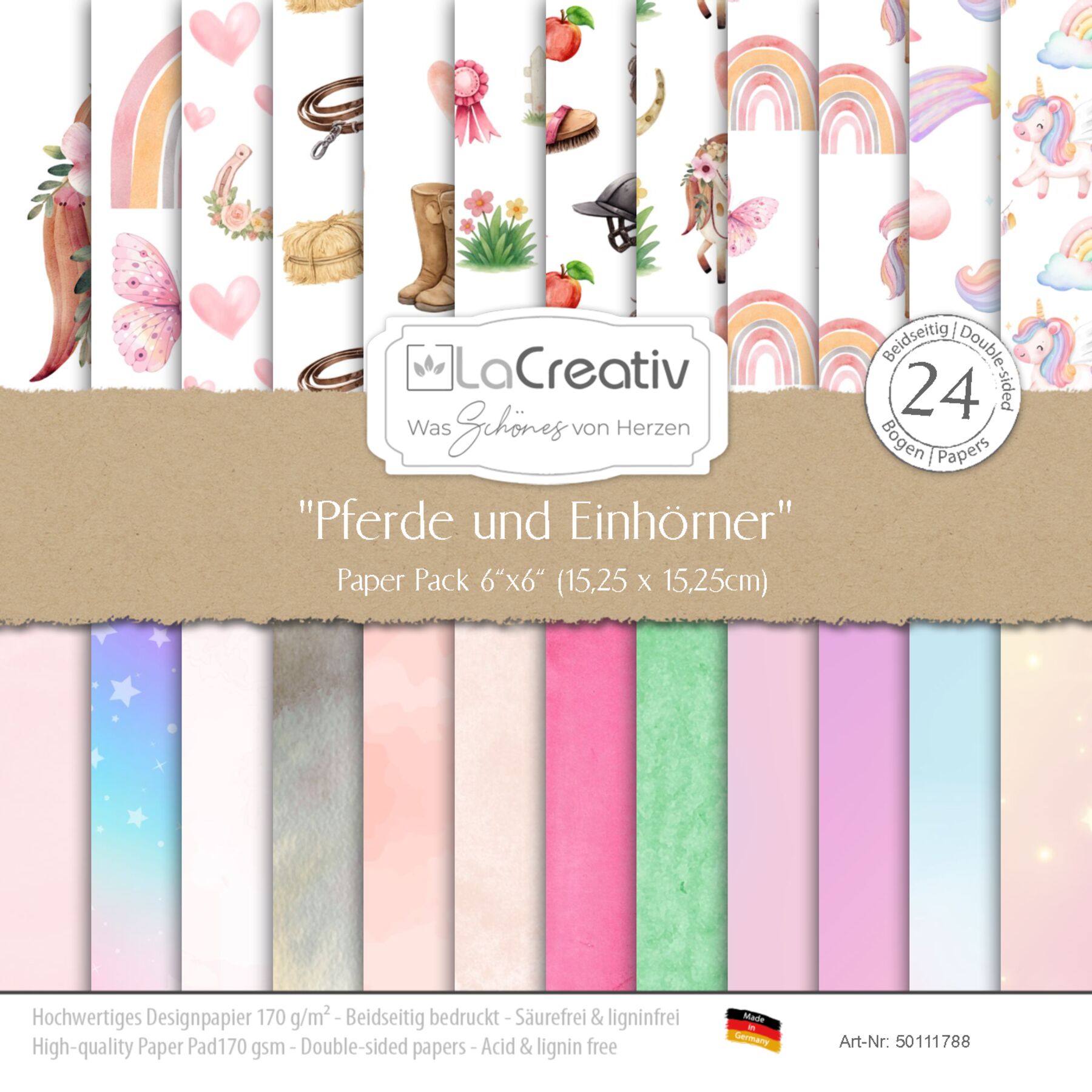 "Pferde und Einhörner" 6x6 Inch (15,25x15,25cm) 170g/m²