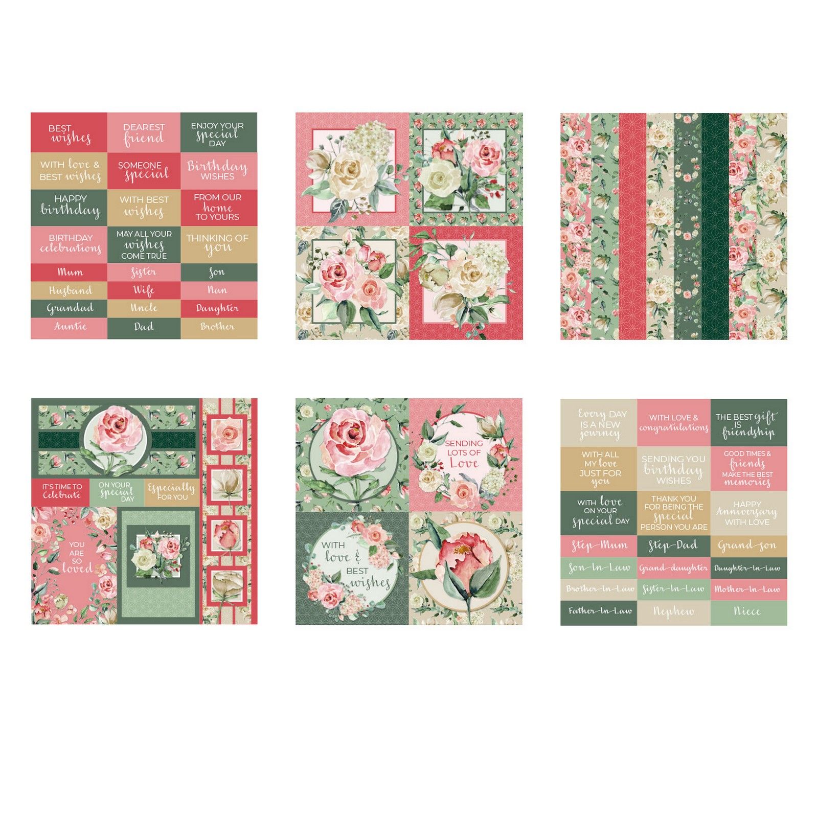 - 36 gemusterte Designpapiere in 6 verschiedenen Designs