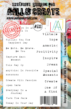 AALL and Create ist für seine Hintergrundstempel im Bereich Mixed Media bekannt. Neben Stamps bietet AALL and Create auch Stencils und Stanzen an.