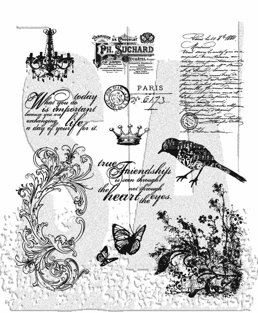 Stampers Anonymous - Gummistempelset "Shabby French" Cling Stamp Design by Tim Holtz (CMS087)